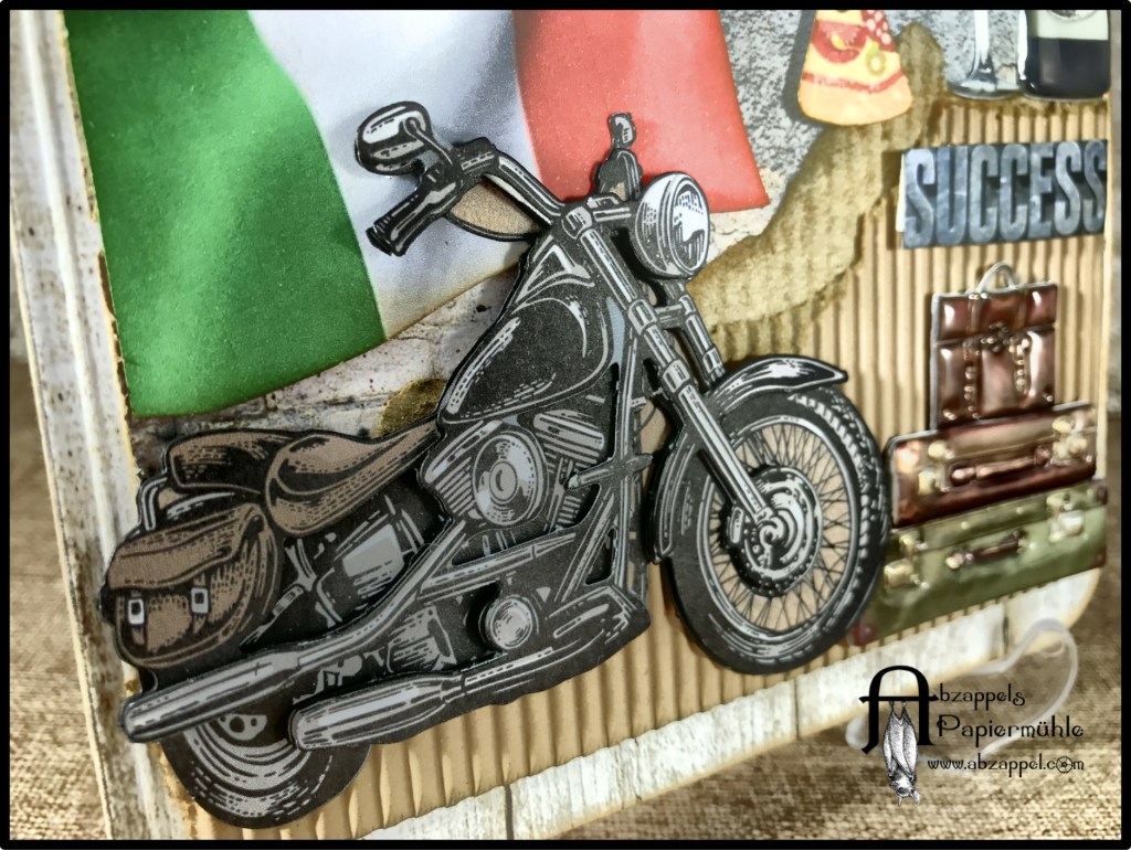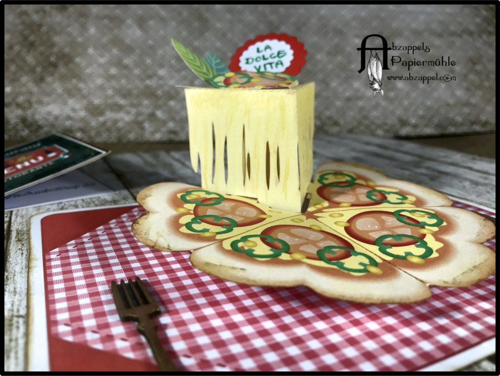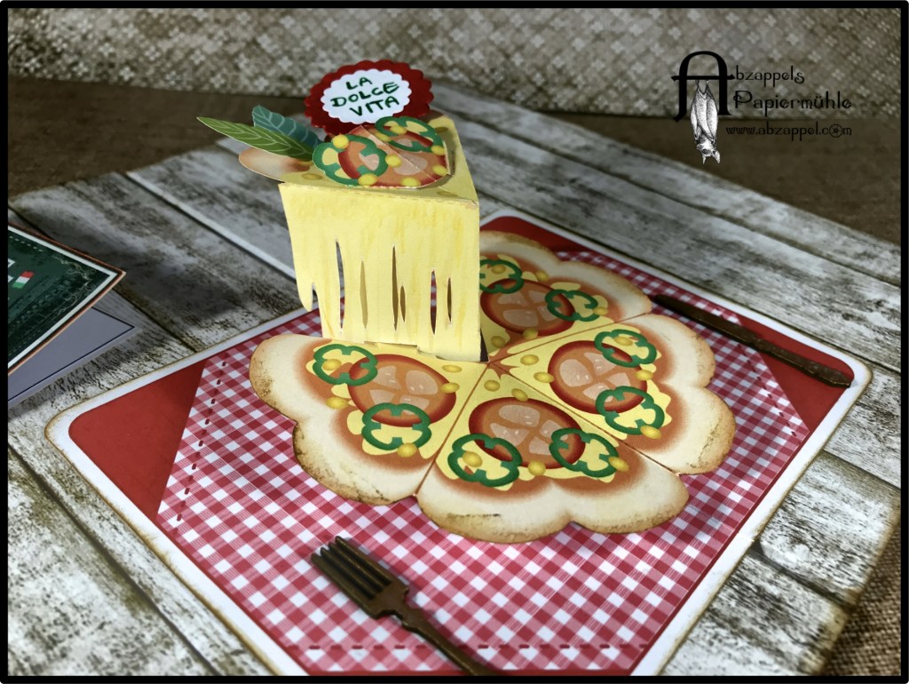 ein Kamerad von meinem Mann hat sich nach Italien versetzen lassen. Zum Abschied sollte ich im noch ein Karte basteln. Ich hatte noch ein gebasteltes „Pizza-mit-Ziehkäse“-Popup-Element fertig, und dachte mir das passt gut. Bei Etsy gibt es einen Shop mit super geilen 3D-Popup-Karten, Kagisippo. Ein bisschen kompliziert zu basteln, aber es gibt super Anleitungsvideos dazu. Einige sind auch gratis, lohnt sich wirklich mal vorbei zu schauen.